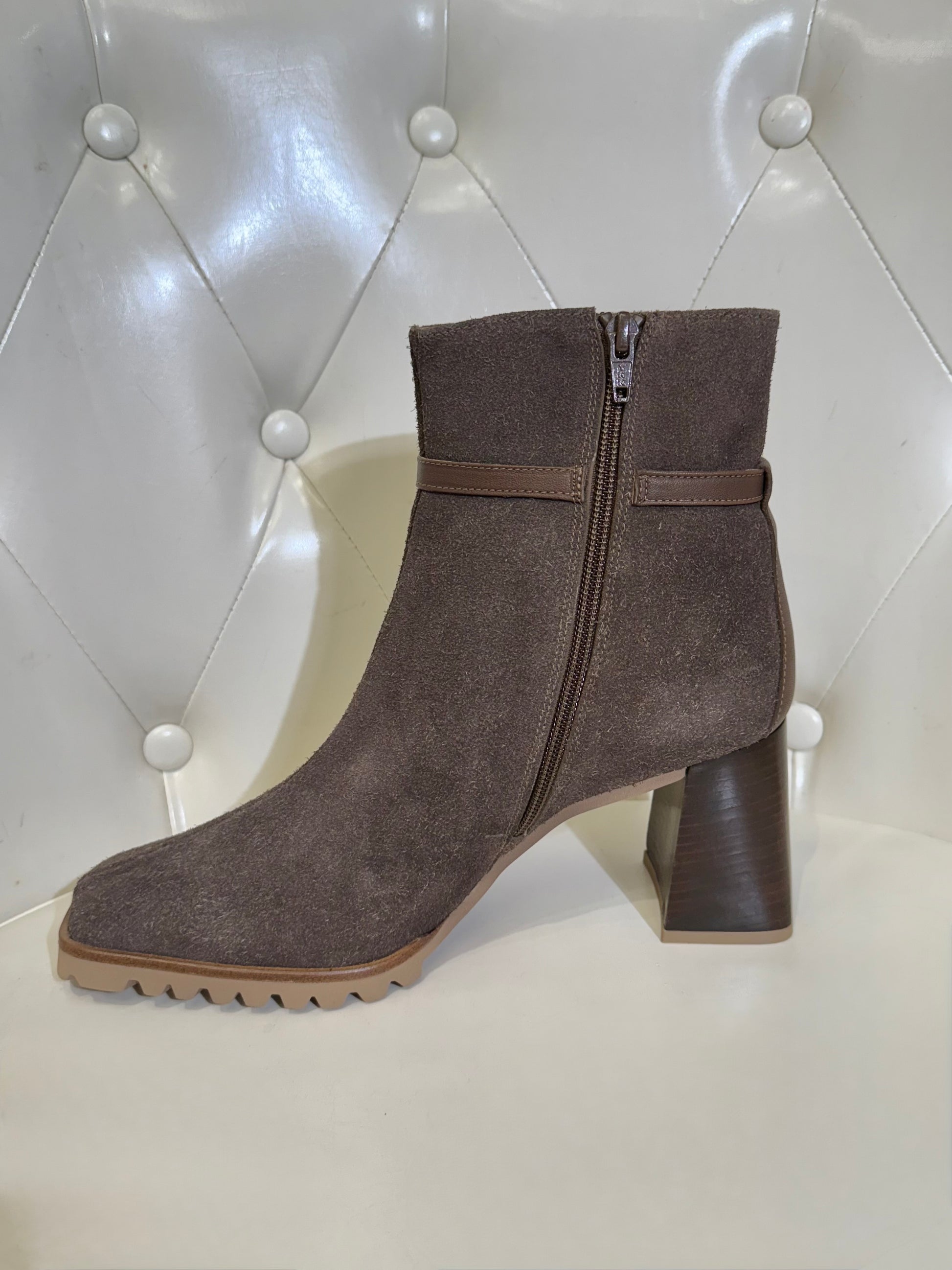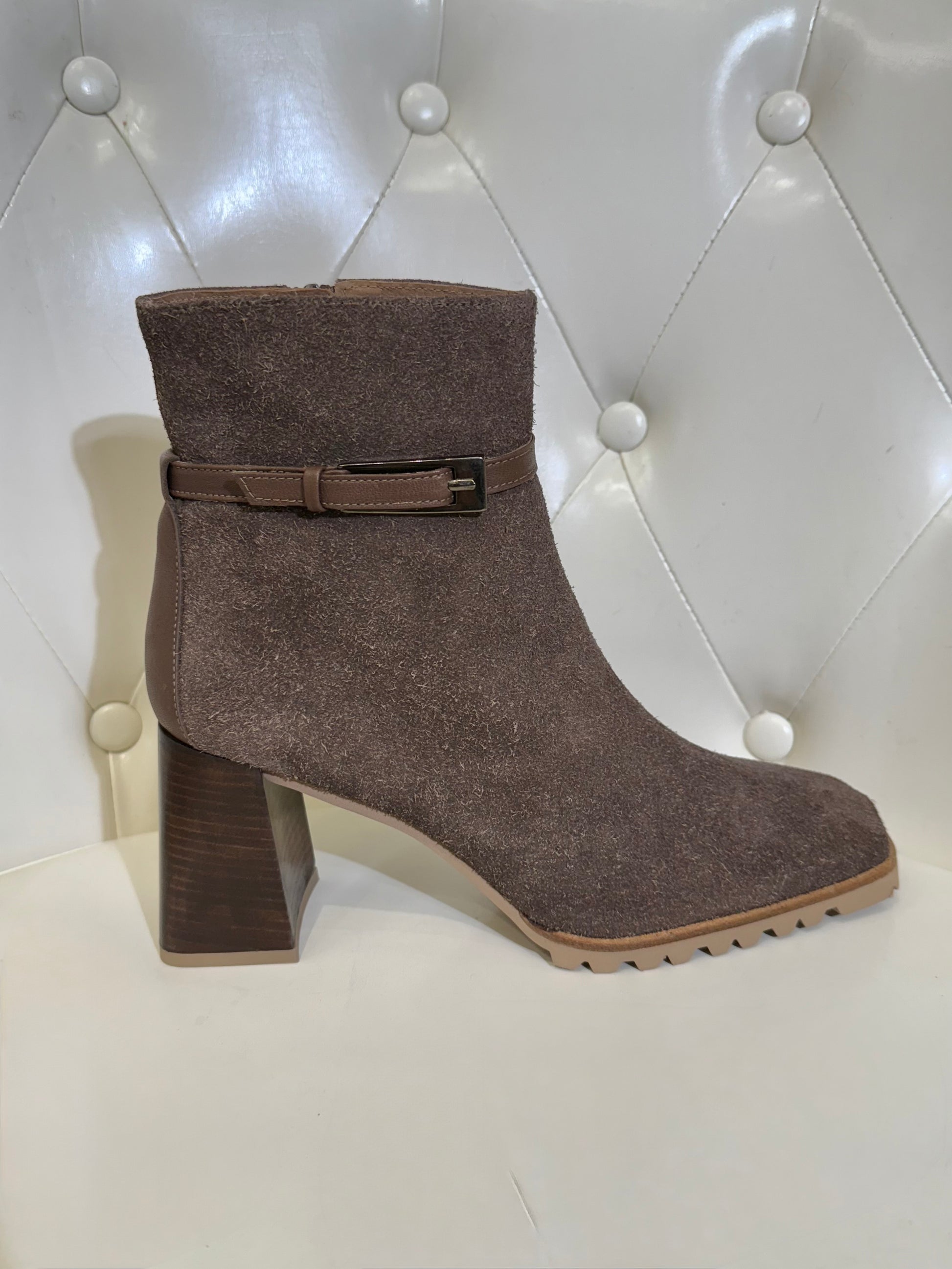 Botín de la firma Doralatina fabricado en España en piel, con detalle de hebilla.
