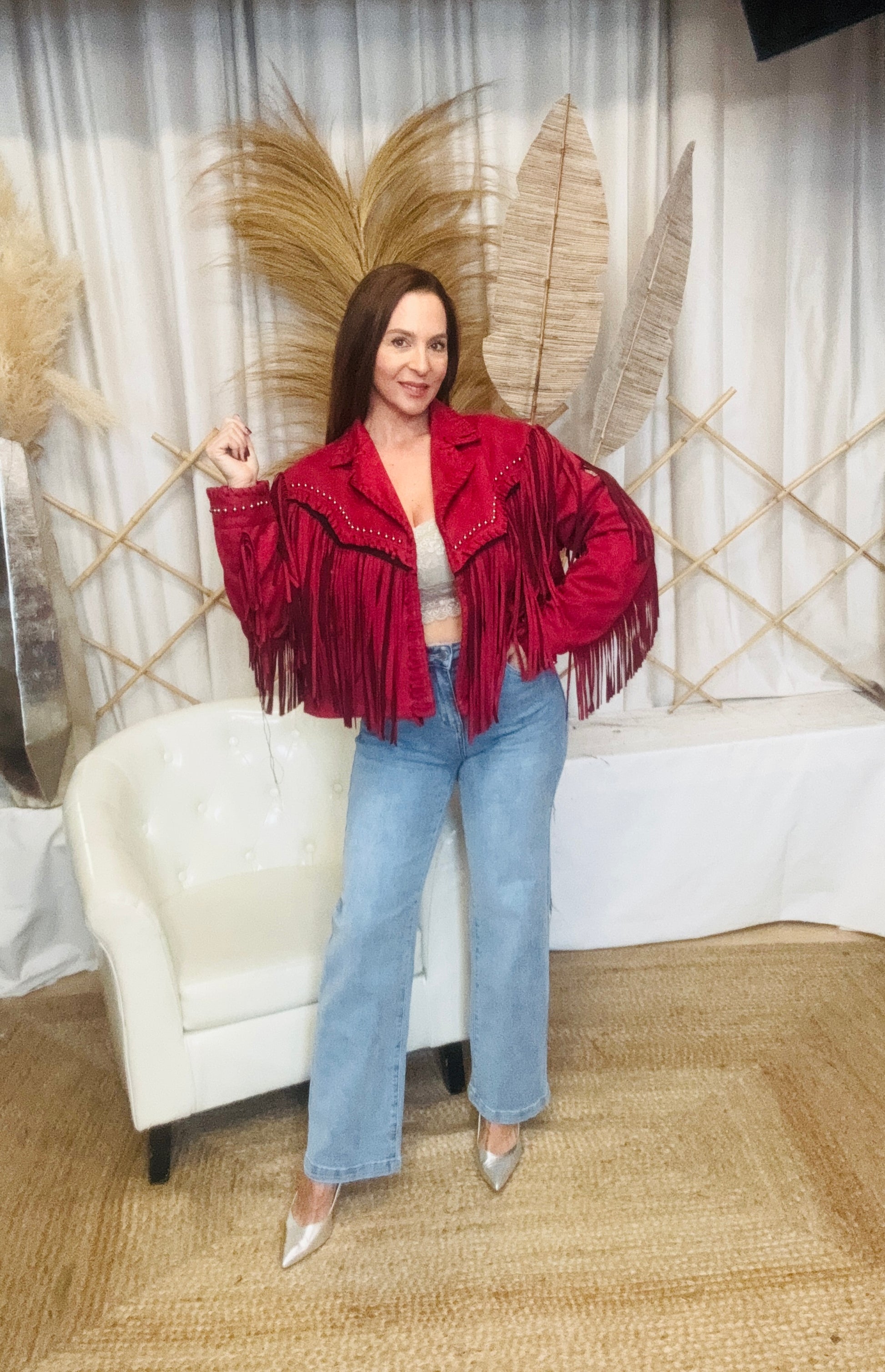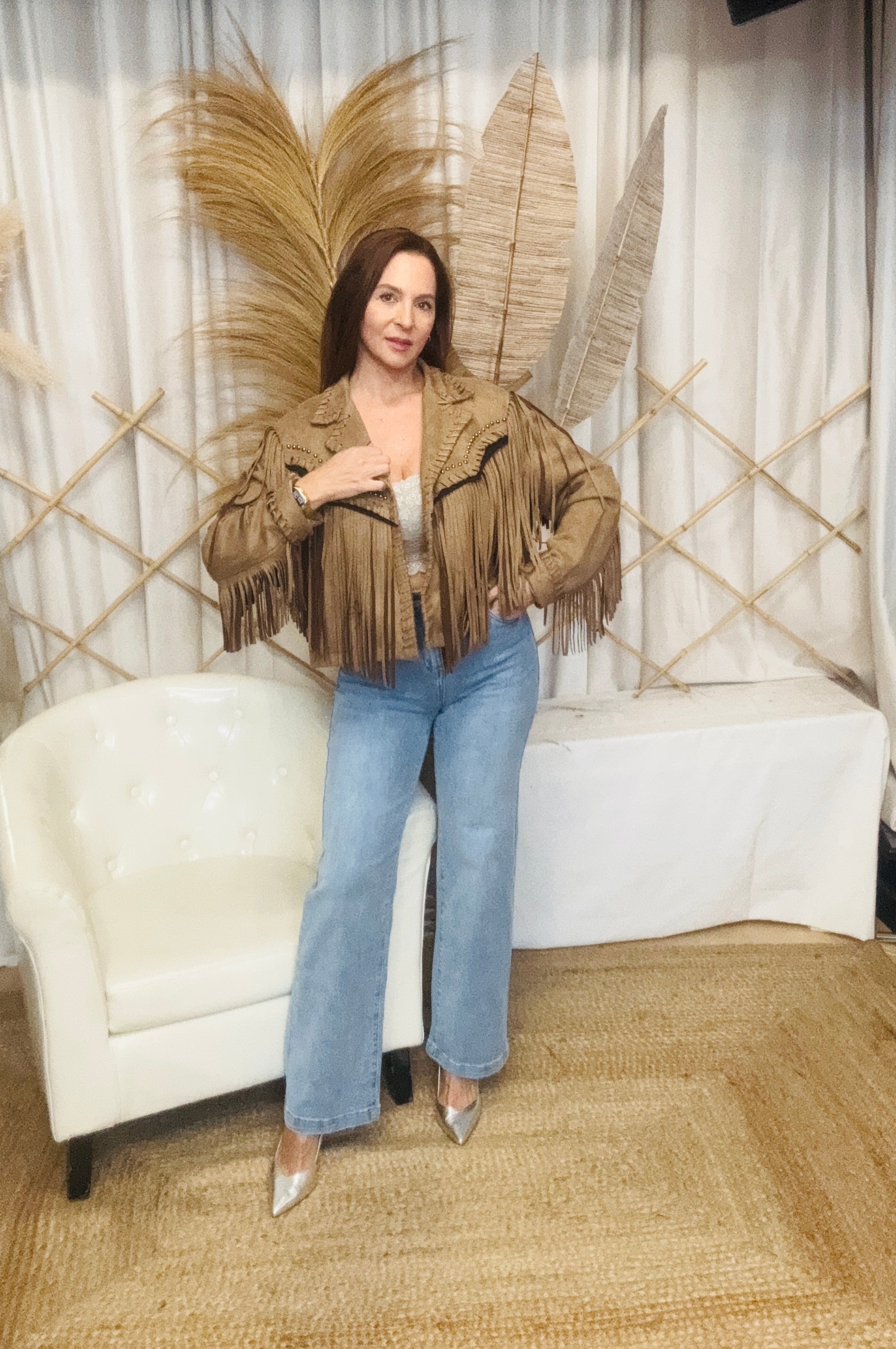 Chaqueta Lisettt con detalles flecos , modelo oversize talla única 36 a 44.