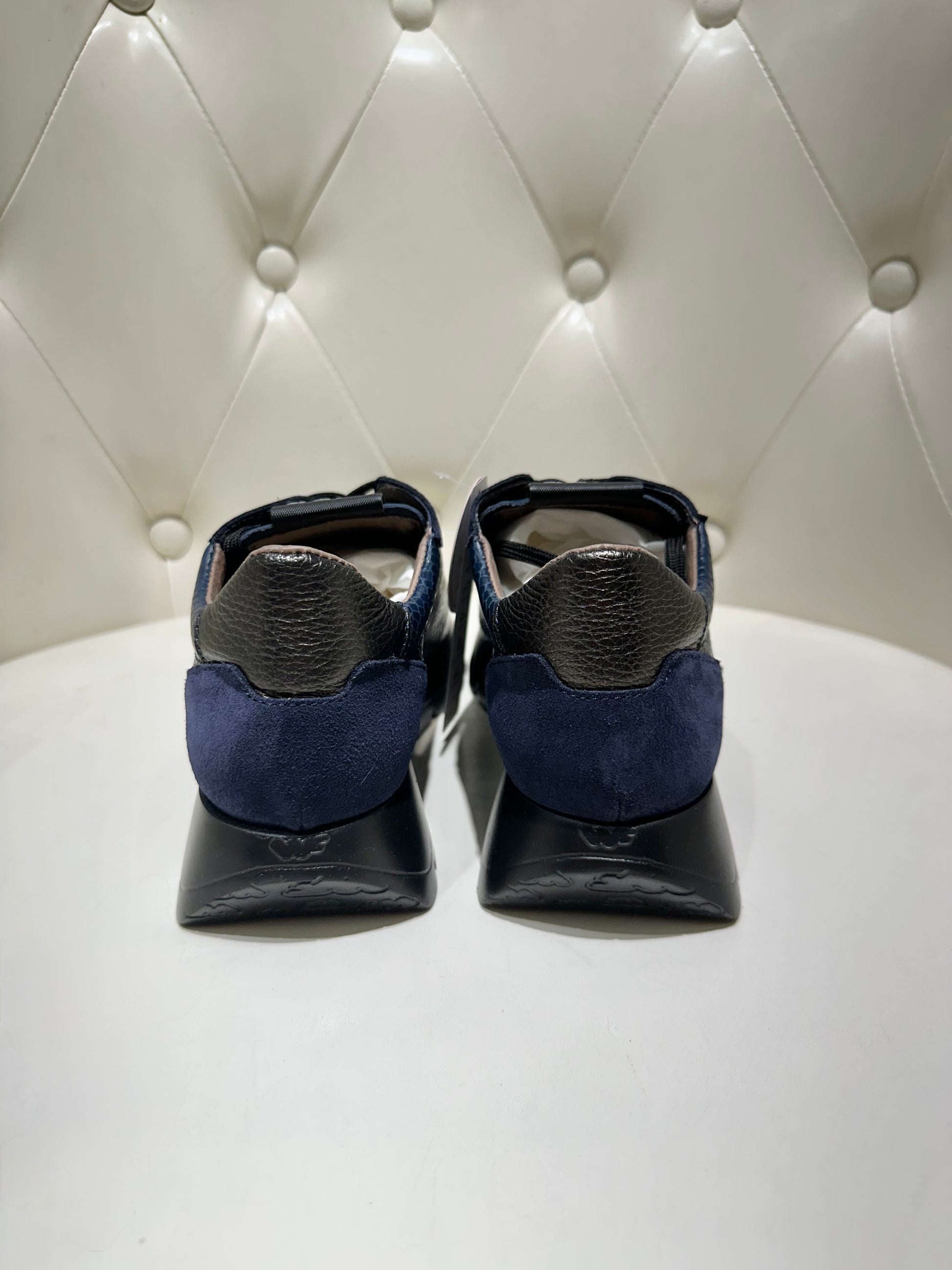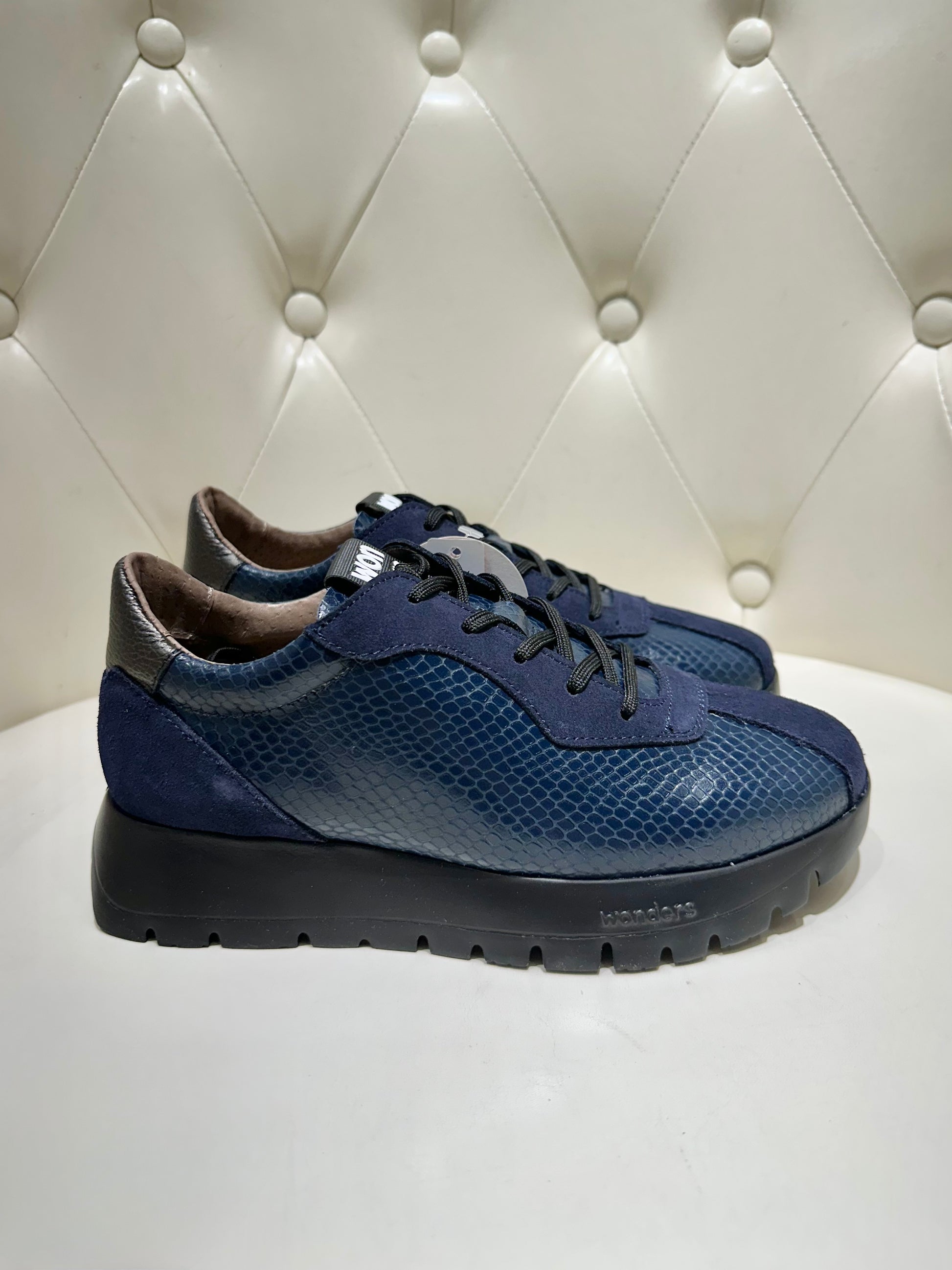 Zapatillas deportivas de estilo casual de la marca WONDERS para mujer. Diseño moderno que combina piel y nylon. Cierre con cordones elásticos. Plataforma de 3,5 cm de altura. Tecnología Wondersfly que aporta ligereza, flexibilidad, resistencia. Plantilla de comfort, ergonómica. Eco Friendly. Fabricadas en España.